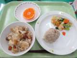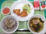 お赤飯・とりのから揚げ・きゃべつのしおこんぶかけ・お祝いすまし汁・紅白ゼリー・...