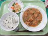 マーボー豆腐丼・白菜のピリピリづけ・みかん・牛乳