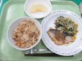切り干し大根のごはん・さばのごまだれやき・いそあえ・りんご・牛乳