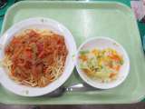 スパゲッティ地中海ソース・コーンサラダ・牛乳