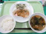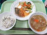 ごまごはん・さばの味噌煮・きゃべつのあっさりあえ・もちもちスープ・牛乳