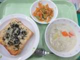 じゃこマヨトースト・豆乳のスープ・カリカリ豆のサラダ・牛乳