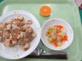 わかめとじゃこのごはん・なまあげのそぼろあんかけ・福神漬け風サラダ・牛乳