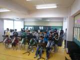 12/16 音楽朝会で「気球に乗ってどこまでも」を合唱