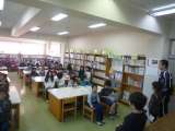 3時間目に、2年2組と4年2組の兄弟学級が図書室に集まって、4年生が2年生への読...