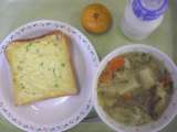☆12/17の献立 セルフサンドパン 牛乳 コロッケ 茹でキャベツ 野菜スープ ...