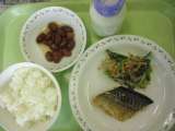 ☆12/10の献立 ご飯 牛乳 さばのピリ辛ソースかけ 野菜のごまみそ和え うず...