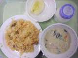 ☆12/13の献立 磯おこわ 牛乳 すまし汁 フーイリチー フーイリチーは沖縄...