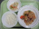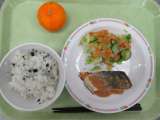 わかめご飯 牛乳 鰆のピリ辛ソースかけ パリパリサラダ くだもの(みかん) <...