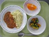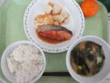 ごはん 牛乳 鮭のステーキソース 粉ふき芋 味噌汁 みかん <主な食材と産地>...