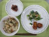 五目ごはん 牛乳 いかのかりんと揚げ ごまあえ 煮豆 <主な食材と産地> ...
