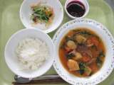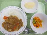 大根カレー 牛乳 パンプキンサラダ りんご 今日は世田谷産の大蔵大根を使ってカ...