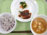 ゆかりごはん 牛乳 鯖の黒酢煮 野菜のわさび醤油あえ えのきの味噌汁 <主な...