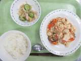 ごはん 牛乳 家常豆腐 白菜の中華サラダ <主な食材と産地> にんにく ...