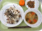 茶飯 牛乳 洋風おでん 大豆とじゃこの甘辛揚げ みかん <主な食材と産地> 人...