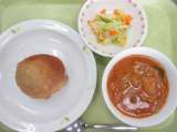チョコチップパン 牛乳 ミートローフ カラフルサラダ キャロットポタージュ ...