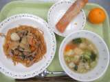 米粉のぱん 牛乳 ぶりのマリナード焼き 青のり粉吹き芋 野菜のスープ <主な...