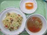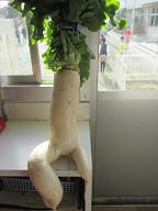 5年生が中庭で野菜を作っています。地域の農家の方から野菜の種などをいただきました...