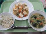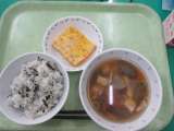 大豆とじゃこのごはん・四川豆腐・たまごとわかめのスープ・牛乳 主な食材と産...
