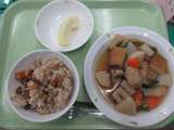 さといもごはん・鶏肉と大根の煮物・みかん・牛乳 3年生は、総合的な学...