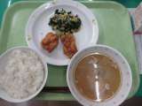 大根カレーライス・わかめとじゃこのサラダ・牛乳 今日は、3年1組の児童が考...