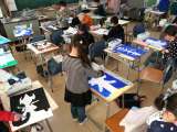3年生は図工の時間にうちゅう人をイメージして描いています。絵具で色を工夫して、想...