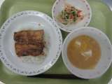 さんまのかば焼き丼 牛乳 もやしの味噌風味 白菜の味噌汁 <主な食材と産地> ...