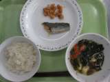 ごはん 牛乳 鰆の西京焼き 大豆とじゃこの甘辛揚げ すまし汁 <主な食材と産地...