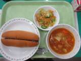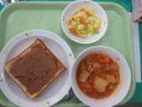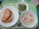 焼きカレーパン・きゃべつと豆乳のスープ・青のりポテト・牛乳 主な食材と産地...