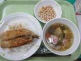 ごはん・じゃんぼぎょうざ・のりあえ・みそしる・牛乳 6年生家庭科で 1食分...