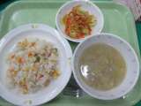 ピラフ・じゃがいものハニーサラダ・ABCマカロニスープ・牛乳 主な食材と産...