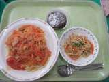 トマトクリームスパゲティ・じゃこサラダ・ガトーショコラ・牛乳 主な食材と産...