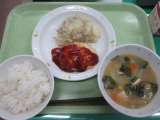 ごはん・さばの韓国風焼き・ポテトサラダ・みそしる・牛乳 6年生家庭...