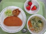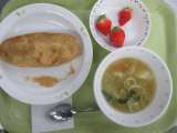 きなこ揚げパン 牛乳 白菜と肉団子のスープ いちご 今日は6年生のリクエスト給...