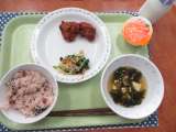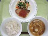 ごはん 牛乳 魚のバーベキューソース 野菜のごま和え なめこの味噌汁 <主な...