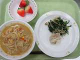 札幌ラーメン 牛乳 ジャンボしゅうまい 青菜の乾物和え いちご 卒業生のリク...