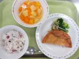 パインパン 牛乳 魚のガーリック焼き 粉ふき芋 白菜のスープ 鮭にレモン・にん...