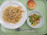 キャベツとツナのスパゲティ 牛乳 春野菜サラダ チーズケーキ <主な食材と産地...
