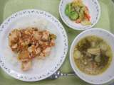 麻婆豆腐丼 牛乳 野菜の中華かけ 中華スープ <主な食材と産地> にんにく ...