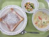 シナモントースト 牛乳 ビーンズサラダ コーンシチュー シナモントーストに粉...