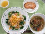 きなこ揚げパン 牛乳 白菜と春雨のスープ ナムル ヨーグルト <主な食材と産地...