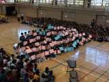 次は3年生の出し物です。人文字を使いながら6年生のすばらしいところを紹介してく...