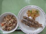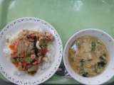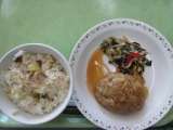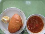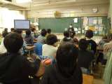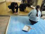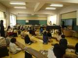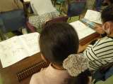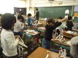 図工の先生のスペシャル授業です。紙を切って、造形遊びをしています。楽しそうに取り...