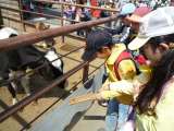 ソフトクリームを食べた後、牛や羊のえさをみんなで順番にやりました。牛の頭がとても...