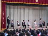 入学したての一年生を迎えての対面式です。上級生がやさしく一年生を歓迎しました。