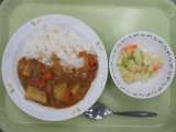 カレーライス 牛乳 福神漬 きゃべつサラダ <主な食材と産地> にんにく ...