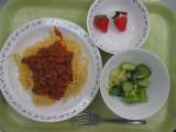 スパゲティミートソース 牛乳 アスパラガスのサラダ いちご <主な食材と産地>...