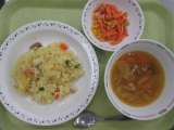 パエリア 牛乳 人参サラダ 白いんげんの田舎スープ <主な食材と産地> 玉ね...
