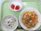 わかめごはん にくじゃが いちご 牛乳 (主な食材の産地) タマ...