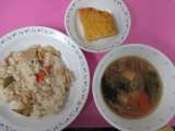 やきそば 卵スープ フルーツ白玉 牛乳 (主な食材の産地) タマネ...